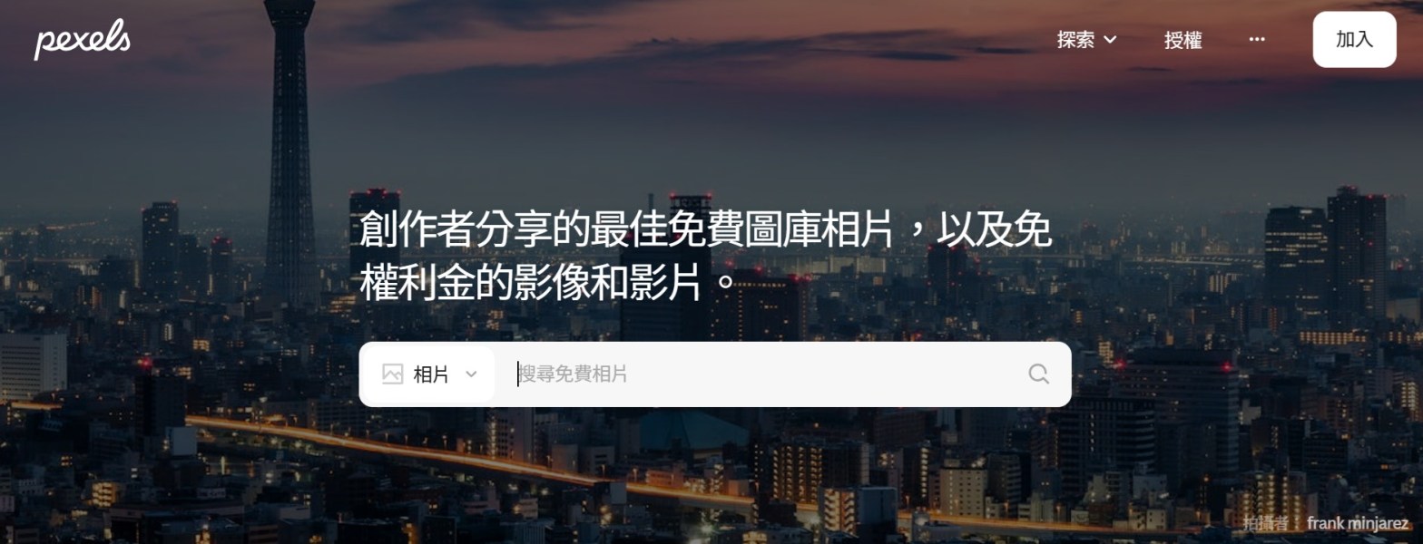 Pexels 是另一個熱門免費圖庫,支援中文搜尋,除了照片還有影片素材可使用,非常適合社群行銷與短影音創作者。